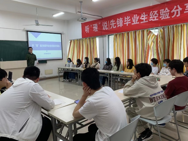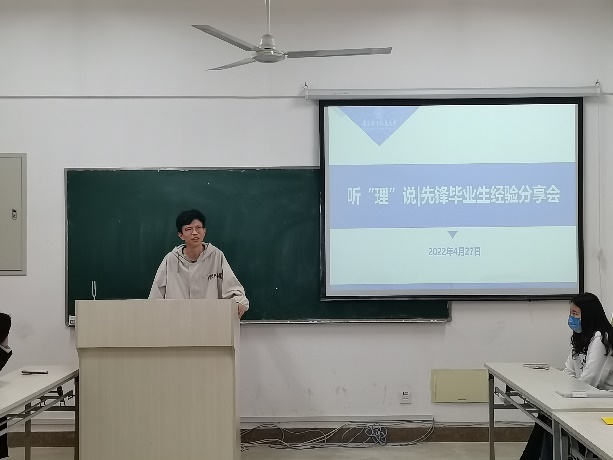 4月27日下午4点,社团学姐 第一期“听‘理’说”先锋毕业生经验分享会活动于理学楼547会议室举办,活动邀请理学实验班学生张凯峰、周易、张子木为主讲人,社团学姐 大一大二学生代表及辅导员刘思佳、胡诗帆、邢临川、陈越参加会议。分享会旨在搭建理学实验班与低年级学生间的交流平台,帮助低年级同学传承实验班优秀同学追求卓越的精神、学习中的好经验、好做法,助力自身成长成才。