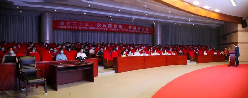 5月9日晚,材料科学与技术学院、社团学姐 、物理学院联合举办的2022年春季“入党积极分子”暨“青年马克思主义者培养工程”培训在将军路校区一号楼四楼报告厅顺利举行。马克思主义学院教授平旭、材料科学与技术学院党委书记石勇、物理学院党委书记陈修文、社团学姐 党委副书记周佼佼、材料科学与技术学院党委副书记庄晓舒、各学院组织员、团委书记、辅导员以及本期培训班全体学员参加了本次培训。培训由材料科学与技术学院团委书记徐萍主持。