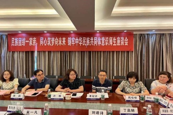 6月18日下午,社团学姐 召开“民族团结一家亲,同心筑梦向未来”铸牢中华民族共同体意识师生座谈会。社团学姐 党委书记许静,校党委统战部副部长、组织部副部长单冠贤,学生工作处副处长、学工部副部长张跃,新疆内派教师玛依拉·赛依力、张明坤,学院团委书记戚月、少数民族辅导员迪丽努尔·贝坎与来自全校维吾尔族、蒙古族、鄂温克族等八个民族的9名同学进行座谈。社团学姐 党委副书记周佼佼主持座谈会。