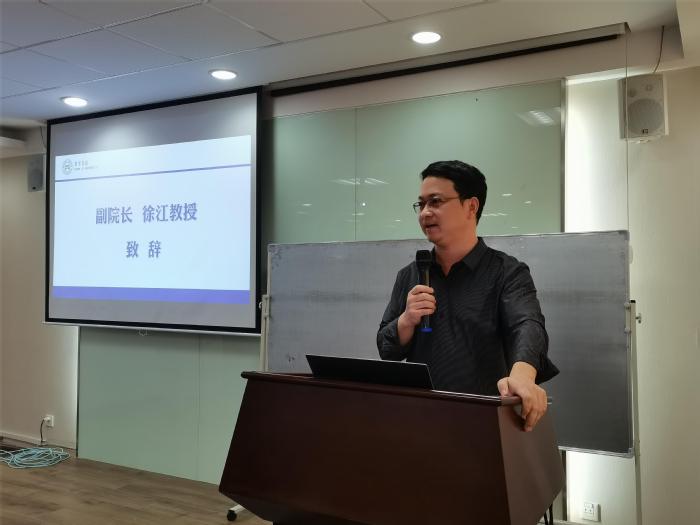 徐江代表学院向研究生新生表达了祝贺和欢迎,同时向大家介绍了社团学姐 的发展历程及基本情况,并对研究生新生们提出了两点建议:一是提醒同学们学习要有主动性,主动学习,主动融入导师团队,建立良好的导学关系、同学关系。二是鼓励同学们在学习上要注重创新,强化专业本领,提升学术素养,学习过程中要学会探索,尝试应用。