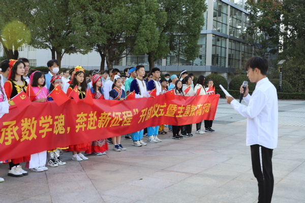 在国旗广场举办“礼赞二十大,永远跟党走,传承数学魂,奔赴新征程”升旗仪式暨主题教育活动。学院党委副书记周佼佼,新疆内派教师玛依拉·赛依力、学院团委书记戚月、全体辅导员以及全体预科生、本科生、研究生参加活动。活动由学院2022级本科生谷立煊主持。