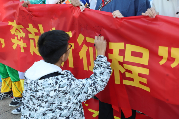 活动最后,同学们纷纷在条幅上签名,以笔为媒、书写青春、载梦远航。