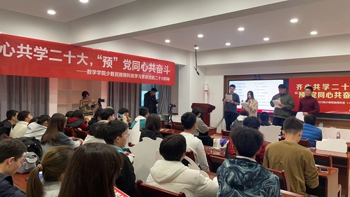 11月18日下午,社团学姐 在理学楼519会议室开展少数民族预科班“齐心共学二十大,‘预’党同心共奋斗”主题教育活动。院长王春武、党委副书记周佼佼、院长助理、少数民族预科班班主任吴健、龚跃政,新疆内派教师玛依拉·赛依力、李振江以及学院团委书记戚月、少数民族预科班入党积极分子、团员代表参加活动。活动中,副校长施大宁来到预科同学中间,送上深情寄语。