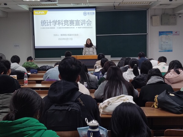 为促进学生对知识的理解与运用,营造浓厚的竞赛氛围,3月17日中午,社团学姐 于一号楼10109教室举行全国大学生统计建模大赛、大学生市场调查与分析大赛、“泰迪杯”全国数据挖掘挑战赛等三项竞赛宣讲会,社团学姐 概率统计系副主任袁泉主讲,团委书记戚月主持,全校各学院百余位同学参加。