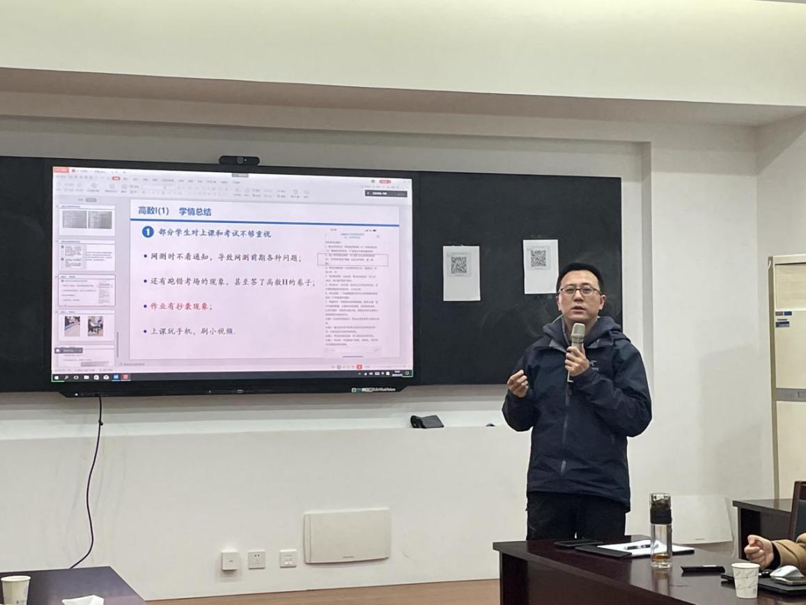 最后,作为本次会议的组织单位,大学数学教学与研究中心主任朱晓星老师作总结发言,他强调数学学习能力对数学竞赛、研究生考试及后续工科学习的重要性,期望形成任课教师主抓课堂、辅导员抓课外的双向合力模式,切实提高课堂质量和教学水平。