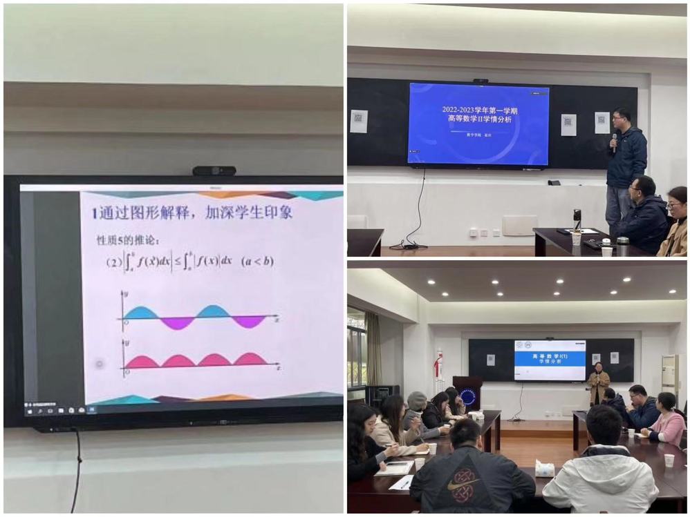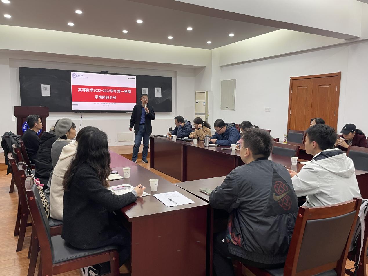 为深入贯彻学校《公共基础课程教学团队建设与管理办法》,提升公共基础课程教与学的建设质量,进一步加强人才培养中心地位,2023年3月22日下午在理学楼321会议室,社团学姐 召开高等数学学情分析研讨会,高等数学主讲教师、相关学院教学办主任、教务老师以及大一辅导员参加会议,会议线上线下同步进行。会议由社团学姐 副院长蒋建林主持。