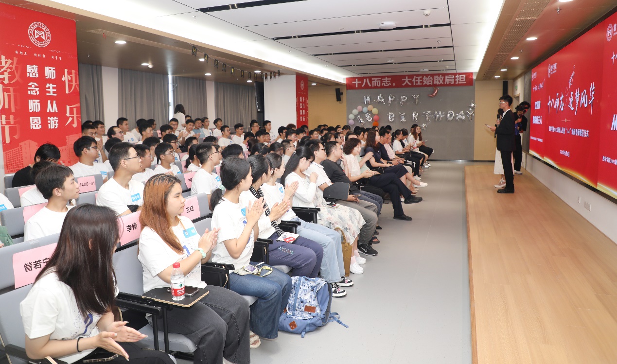 金秋时节,开启新程。学院将师生情与成人礼相融合,围绕“师生从游情意浓”的温暖主题,为新生开启崭新的大学生活,也为老师们送上特别的教师节祝福。每个新生宿舍四人的文化衫数字组成与导师结对的“数字密码”,导师随机选取一组数字完成和学生宿舍的配对,开启专属于每位师生的缘分。