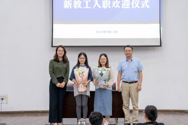 首先,学院举行了新教工欢迎仪式,为新入职教师送上鲜花,期待两位老师在社团学姐 实现自己的新发展,为学院建设贡献力量。