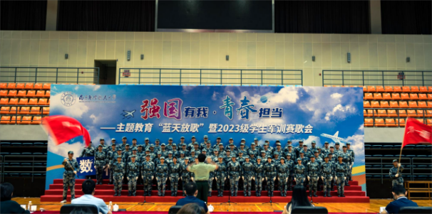 军训赛歌会上,学院全体新生激情澎湃,在蓝天之下唱响军歌《走向复兴》。嘹亮的歌声展现了新生的豪情壮志,青春在军歌中激昂飞扬。蓝天放歌放飞的不仅是大家嘹亮优美的歌声,更是所有数院学子对祖国深沉的爱。