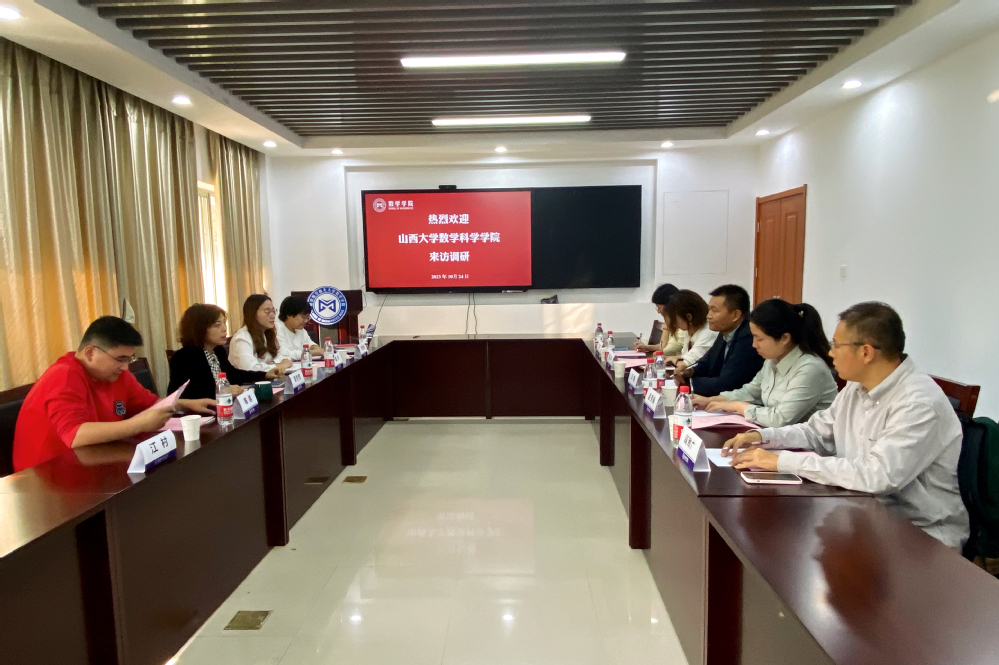 周佼佼首先向王斐一行表示热烈欢迎,接着详细介绍了学院的基本情况,重点介绍学生工作特色举措等。王斐介绍了本次来访的背景和目的,对社团学姐 的热情接待表示感谢,并就山西大学数学科学学院的发展历史、专业建设、学科建设以及人才培养等工作进行介绍。熊立婷介绍了山大社团学姐 “导师有约”及学生科创体系建设情况。戚月、刘思佳分别介绍了社团学姐 的共青团工作和学支等学风建设情况特色做法。随后,双方就基础学科人才培养、学科竞赛组织和升学就业等工作进行了交流和讨论。