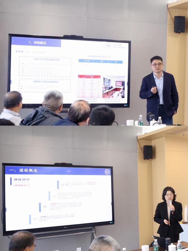 副院长蒋建林围绕教学质量保障、课程思政、卓越教学等方面介绍了学院本科教学工作进展及成果,并就本科教学工作困境与举措进行了汇报。赵颖老师围绕教学设计、教学方法与实施、教学特色与创新、教学效果与评价等方面就“高等数学”一流课程建设与筹备进行了汇报。