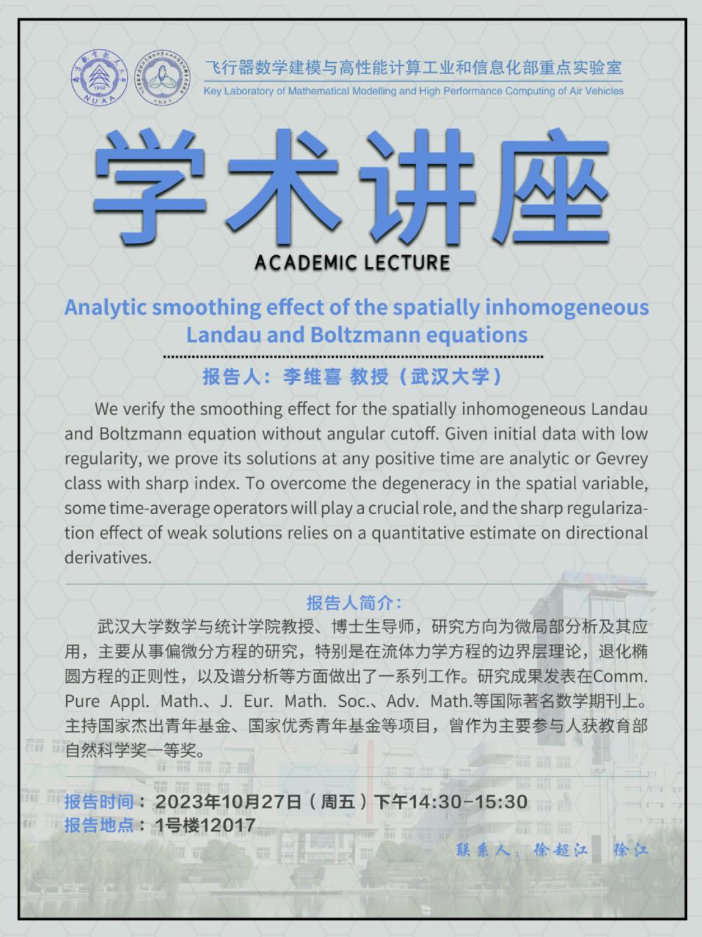 【学术讲座10.27 李维喜 武汉大学】