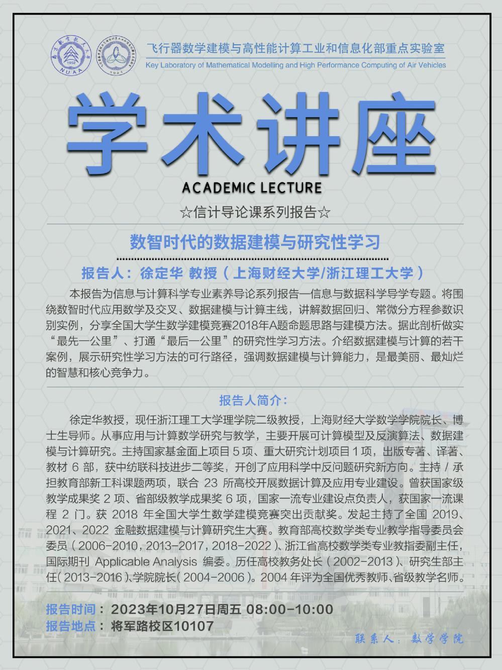 【学术讲座10.27 徐定华 上海财经大学/浙江理工大学】
