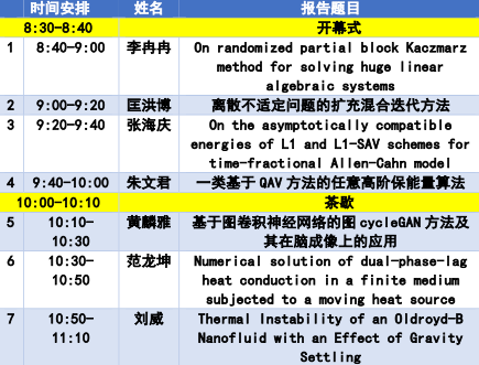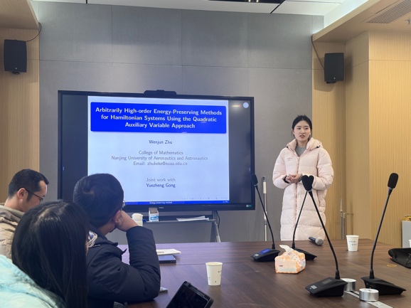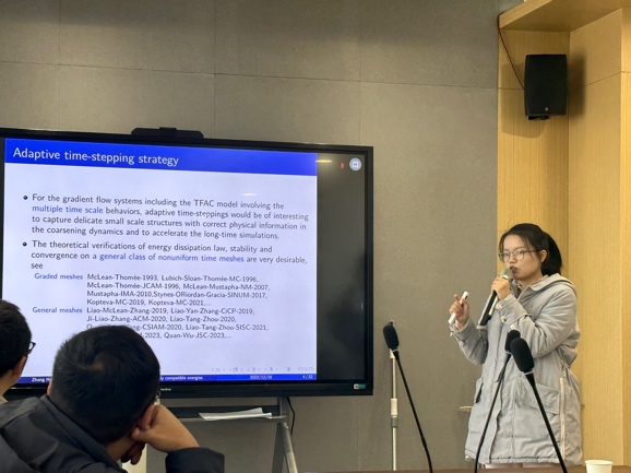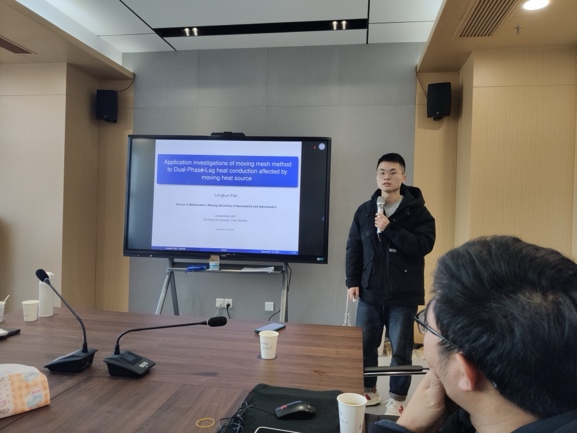 胡志成和龚跃政分别主持上下2个半场的报告会。参会的7名博士、硕士研究生基于数值代数、数值分析、数学物理反问题以及计算流体力学等领域分享了各自的研究成果,报告后的交流互动使参与者们获得了全新的灵感和启发,促进了不同领域间的跨界交流与合作。