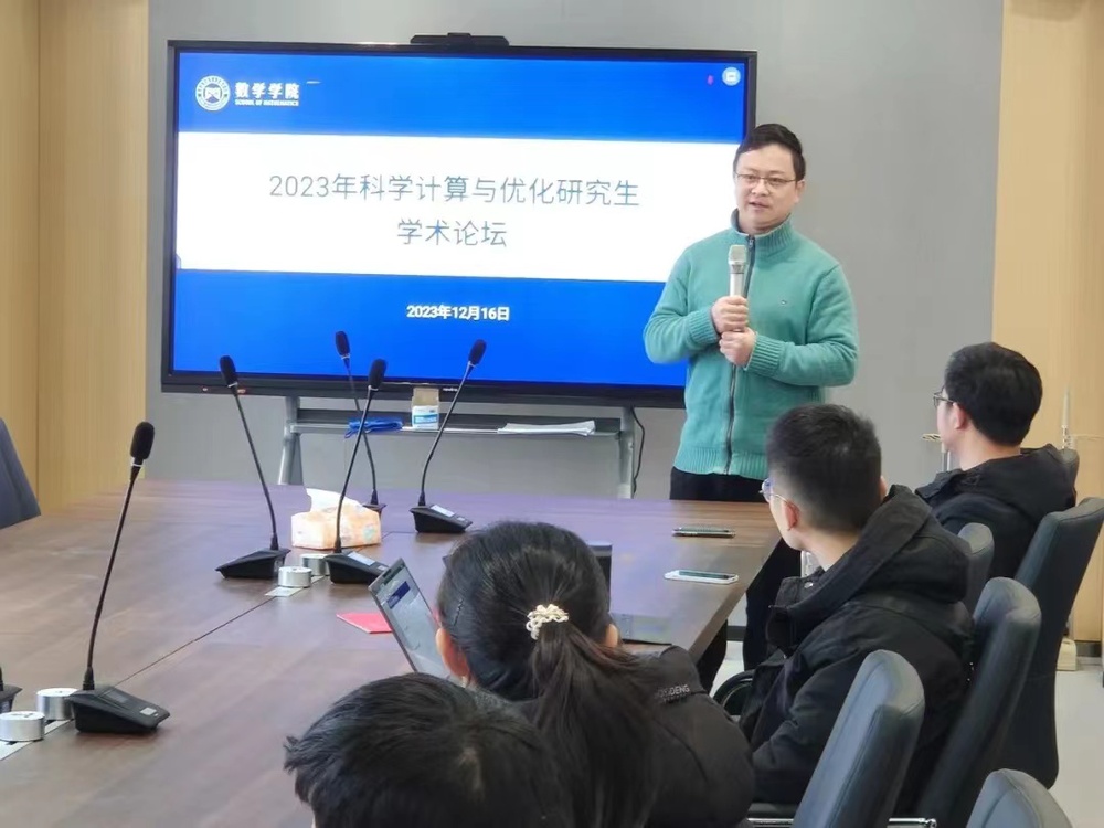 为了促进研究生内部“立足学术、加强交流、锻炼表达、志在提升”,推动研究生科研领域的宽度与深度发展,拓展研究生科学研究的视野和范围,提升研究生问题凝练能力,锻炼研究生的学术表达能力,社团学姐 计算科学系“2023科学计算与优化研究生学术论坛”于12月16日上午在工信部重点实验室12017报告厅顺利举办。副院长徐江、院长助理龚跃政、计算科学系主任龚荣芳,青年教师代表,博士后、以及硕博研究生等20余人参加。论坛由龚荣芳主持。
