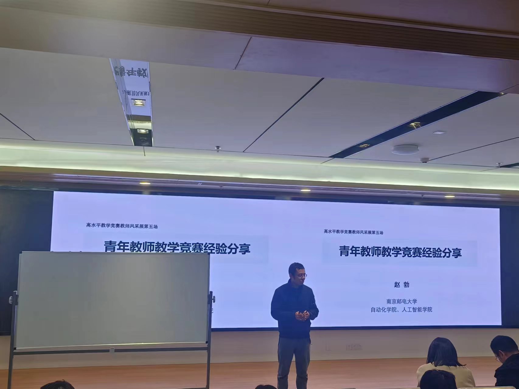 12月14日,由教师发展中心、社团学姐 联合举办的2023年高水平教学竞赛教师风采展第五场活动在社团学姐 1号楼12001报告厅成功举办。本次活动邀请到第五届全国高校青年教师教学竞赛工科组一等奖第一名获得者、南京邮电大学自动化学院、人工智能学院赵勃教授做高水平教学竞赛经验分享。教师发展与教学评估中心主任朱建军及全校40余名教师参加了本次活动,教师发展与教学评估中心教师发展办公室主任易洋主持活动。