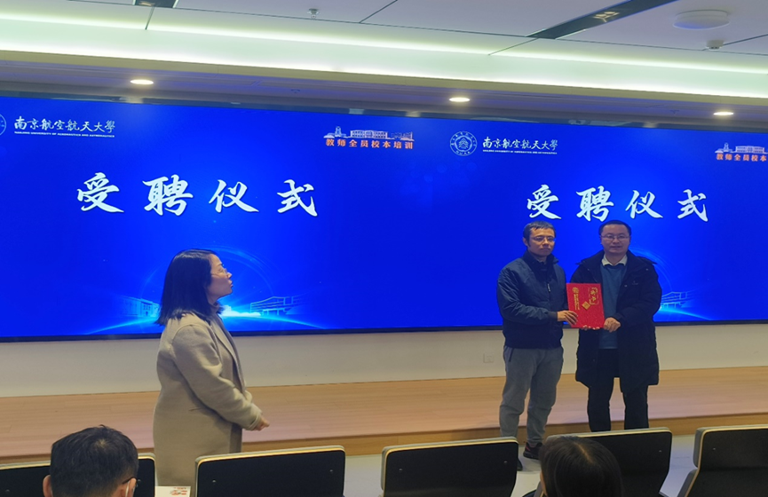 活动伊始,朱建军首先对赵勃教授来南航做关于高校青年教师教学竞赛经验分享的讲座表示热烈欢迎与感谢,并代表教师发展中心为赵勃教授颁发南航高水平教师教学竞赛培育团特聘专家导师证书。
