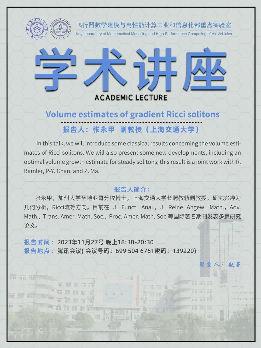 【学术讲座11.27 张永甲 上海交通大学】