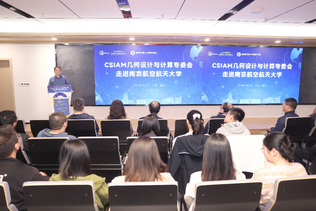 3月23日,“中国工业与应用数学学会(CSIAM)几何设计与计算(GDC)专委会走进高校” 活动在社团学姐 1号楼20楼会议室顺利举办。专委会原主任、国家杰青、国家万人计划教学名师、中国科学技术大学陈发来教授,专委会副主任、国家重点研发计划首席科学家、中科院数学与系统科学研究院贾晓红研究员,专委会副主任、广联达科技股份有限公司副总裁李宾博士,专委会副秘书长、中国科学技术大学陈仁杰教授,航空航天结构力学及控制全国重点实验室副主任、南航机电学院汪俊教授,南航计算机学院魏明强教授以及来自中国科学技术大学、西安交通大学、厦门大学、南京理工大学、河海大学、苏州大学、中国船舶集团海舟系统技术有限公司等高校企业的100多位师生员工参加活动。社团学姐 院长王春武教授出席活动,活动由社团学姐 教师潘茂东主持。