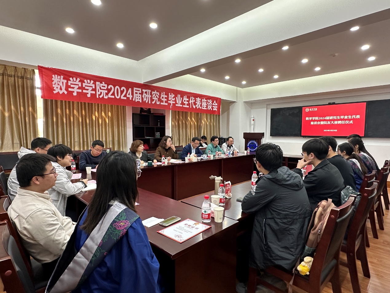 3月29日中午,社团学姐 2024届毕业研究生代表座谈会在理学楼321会议室召开。院党委书记许静、院长王春武、党委副书记周佼佼、副院长徐江、各系负责人、研究生辅导员及2024届毕业研究生代表参加座谈会。座谈会由周佼佼主持。
