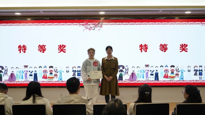 经过赛制积分计算,第二届民理知识竞赛决赛结果发布:机电学院罗曦同学荣获特等奖,经管学院苏尔亚木同学荣获一等奖,社团学姐 龙熙同学荣获二等奖,机电学院穆再排尔同学荣获三等奖。评委老师依次为获奖同学颁发荣誉证书及奖品。