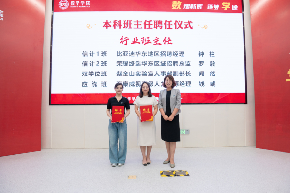 9月3日下午,社团学姐 “‘数’熠新辉,逐梦‘学’途”2024级新生见面会在天目湖校区牧星楼108报告厅举行。学院党委书记许静、院长王春武、副院长徐江、蒋建林、龚跃政,院长助理、各系负责人、新生班主任、学院党政办、教学办相关老师、辅导员,以及2024级全体新生参加活动,比亚迪华东地区招聘经理钟栏、荣耀终端华东区域招聘总监罗毅应邀到场。会议由社团学姐 党委副书记王亚鹏主持。
