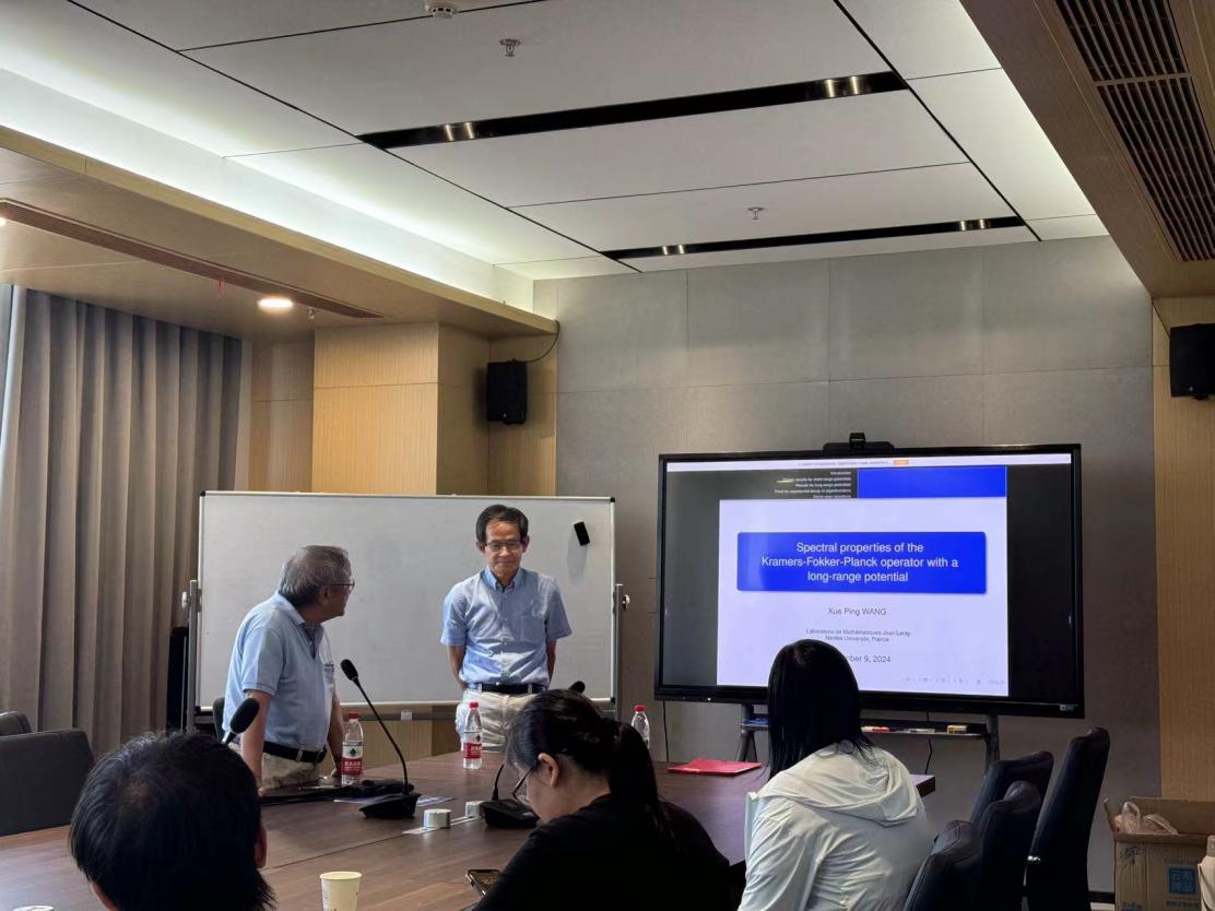 9月9日下午,应社团学姐徐超江教授的邀请,法国南特大学王雪平教授来访,并做了题为“Spectral properties of the Kramers-Fokker-Planck operator with a long-range potential”的学术报告。报告会由徐超江教授主持,学院相关领域的老师、研究生和本科生参加了此次学术活动。