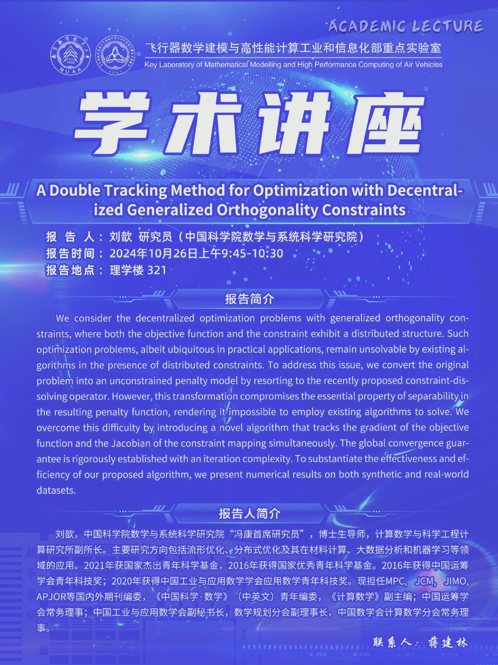 【学术讲座10.26 刘歆 中国科学院数学与系统科学研究院】