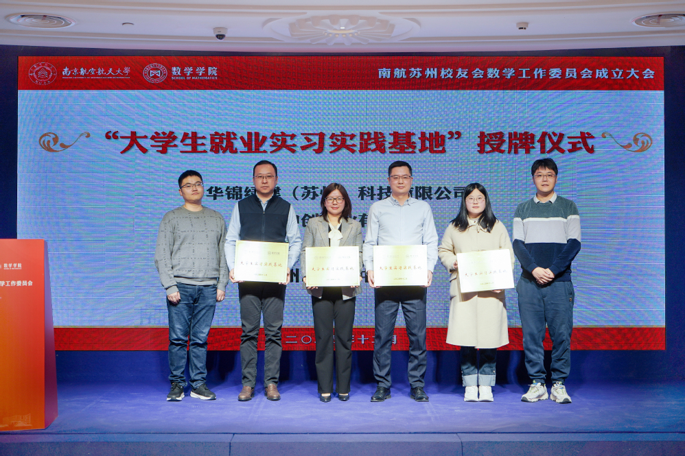为更好凝聚育人合力,发挥校友力量,大会进行了社团学姐 企业导师聘任仪式,并与在苏企事业单位共建了一批“大学生就业实习实践基地”。学院大学数学教学与研究中心主任朱晓星、数学系副主任潘星宏为2000级校友王衍进、孙平波、2001级校友杜斌、2003级校友林青春、2004级校友朱叶峰、2006级校友朱大龙颁发“企业导师”聘书。计算科学系副主任唐与聪、概率统计系副主任陈鹏,与周晓英、孙平波、杜斌、赵紫曼共同为实习实践基地揭牌。