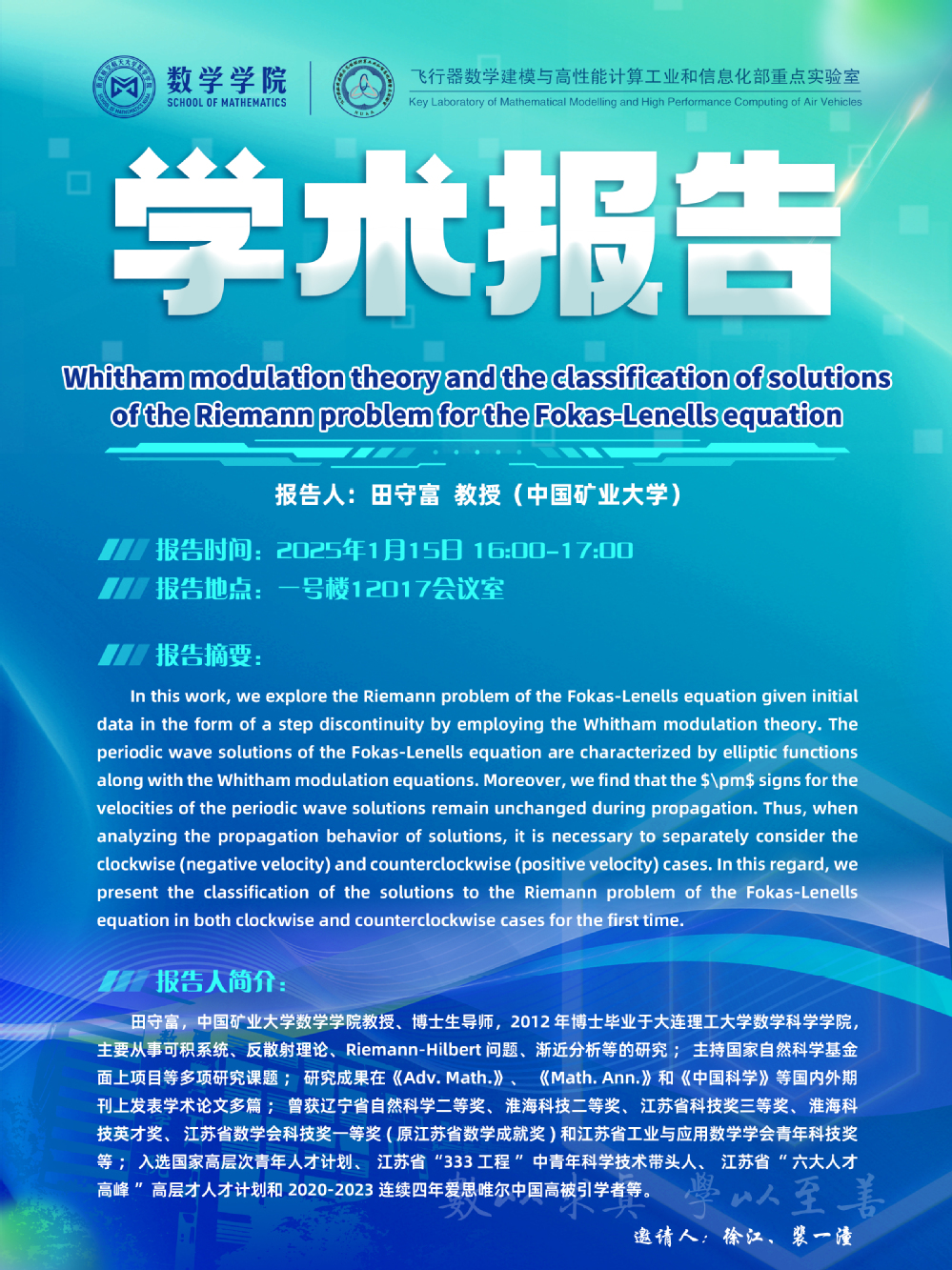 【学术讲座01.15 田守富 中国矿业大学】