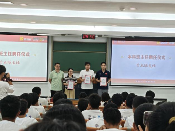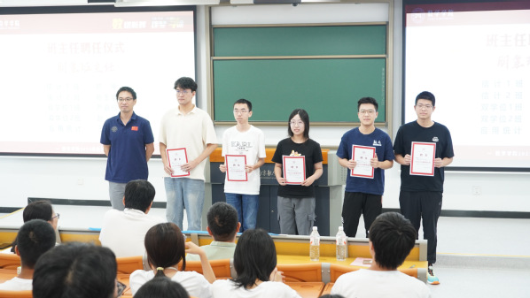 学院为新生精心选聘了三级班主任,朋辈班主任从高年级优秀的学子中层层选拔而来,学业班主任由学院教师尹晨、孙英男、郭雨珍、袁玉环、余迁担任,行业班主任特邀优秀校友、资深行业专家担任,他们将为新生提供全方位的支持与帮助。活动现场,与会领导为朋辈、学业班主任颁发聘书,学业班主任对全体新生提出寄语。