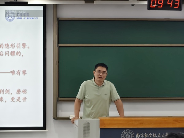 蒋建林从学院的发展历程、师资队伍、科研情况、人才培养等方面详细介绍了学院的基本情况。他指出,数学,是一切科学技术的基石,是推动人类文明进步的隐形引擎。对全体新生提出新学期寄语:“希望大家用四年时光,锻造逻辑的利剑,磨砺思维的锋芒,成长为兼具扎实学识与责任担当的新时代数学人。”