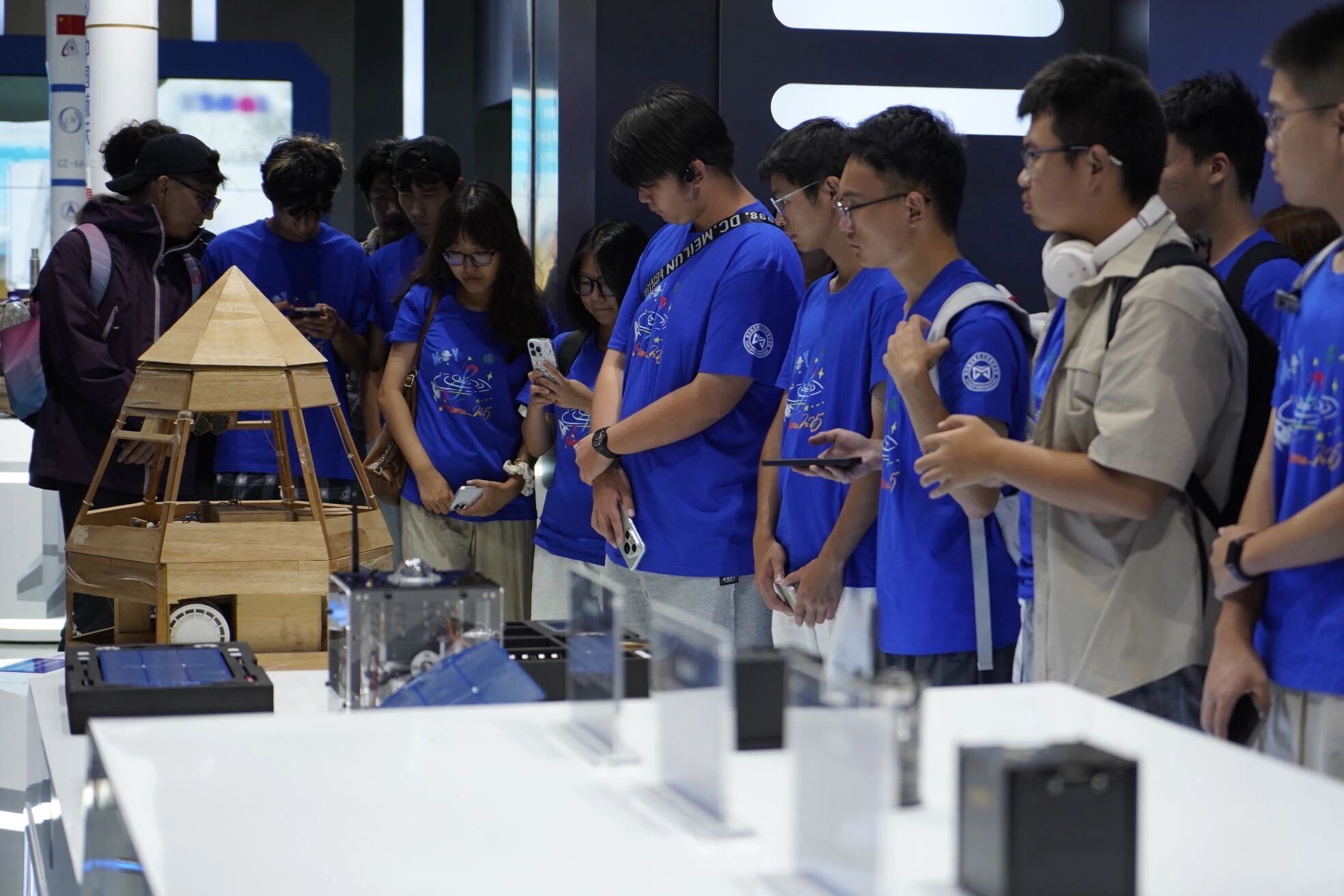 参观航天教育教学基地时,同学们深入了解了中国航天科技的历程与成就,从载人航天、卫星发射到深空探索,航天教育教学基地的每一项展品都让大家感受到了中国航天事业的巨大进步与发展潜力。互动展品和讲解员的生动讲解激发了同学们对航空航天的浓厚兴趣。许多同学表示,希望未来能亲身参与到祖国的航天事业中。