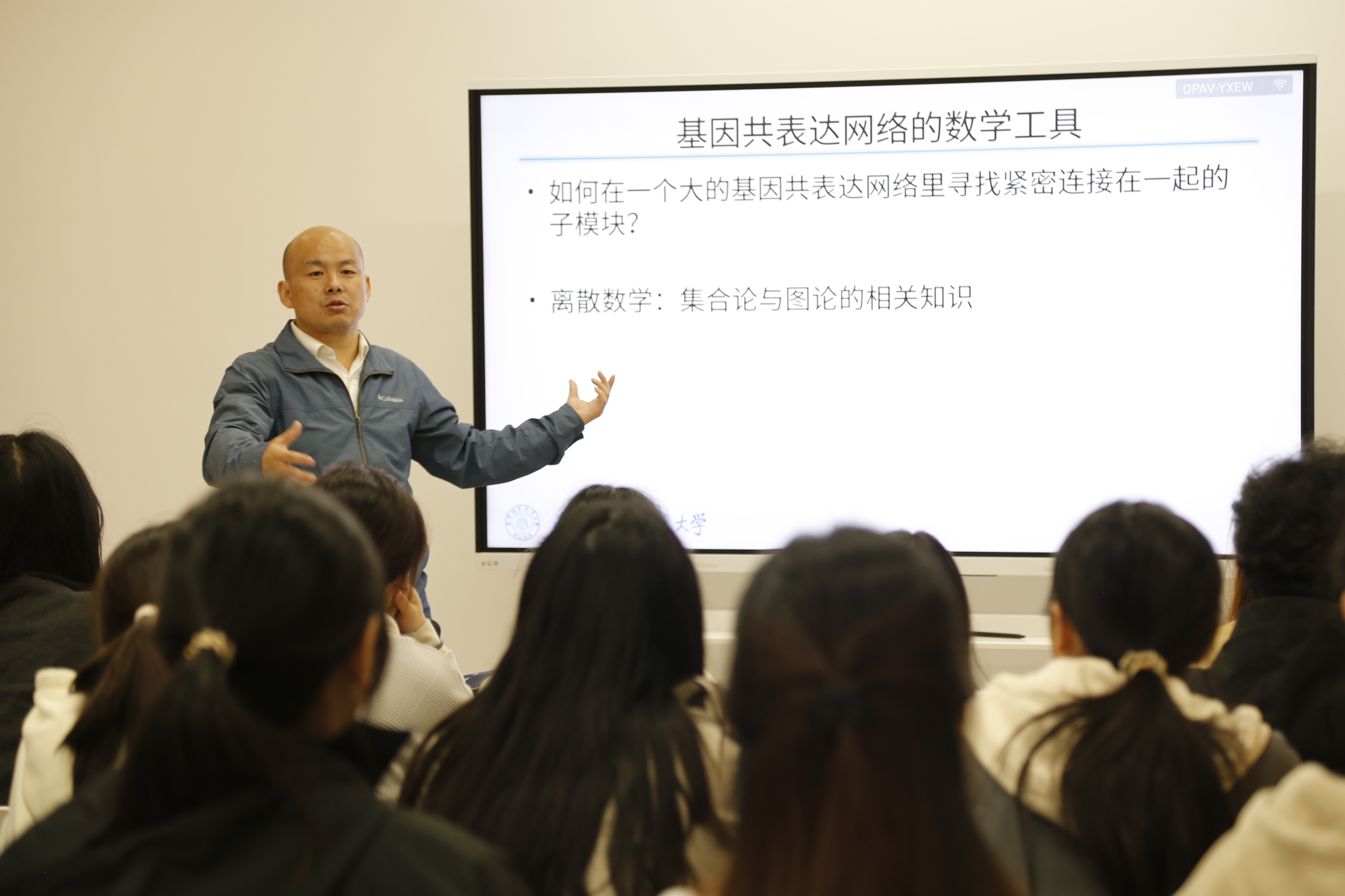 汪泉长期从事数学与生物医学信息交叉领域研究。交流会上,他结合自身学习成长经历与数学学科特性,围绕学科交叉融合、生涯规划准备等核心内容展开分享。他指出,数学与生物医学的深度融合不仅为医疗技术创新注入了新动能,更在疾病预防、诊断等领域发挥着愈发关键的作用;强调数学学习绝非“纸上谈兵”,只有将理论知识与实际案例相结合,才能学深悟透、夯实基础。他鼓励同学们既要扎实掌握数学专业知识,也要主动拓展跨学科视野,在实践中提升综合能力,为未来发展做好充分准备。