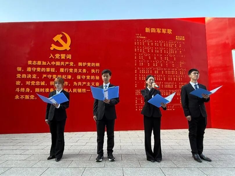 活动伊始,全体团员整齐列队,面向国旗庄严肃立,齐声高唱国歌。随后,全场静默一分钟,向革命先烈致以最崇高的敬意。团员代表涂桢源、雷昊蒙、颜诗雅、梁永智深情朗诵诗歌《不朽》,同学们用铿锵有力的语调、饱含深情的演绎,生动诠释了新四军将士的忠勇无畏。