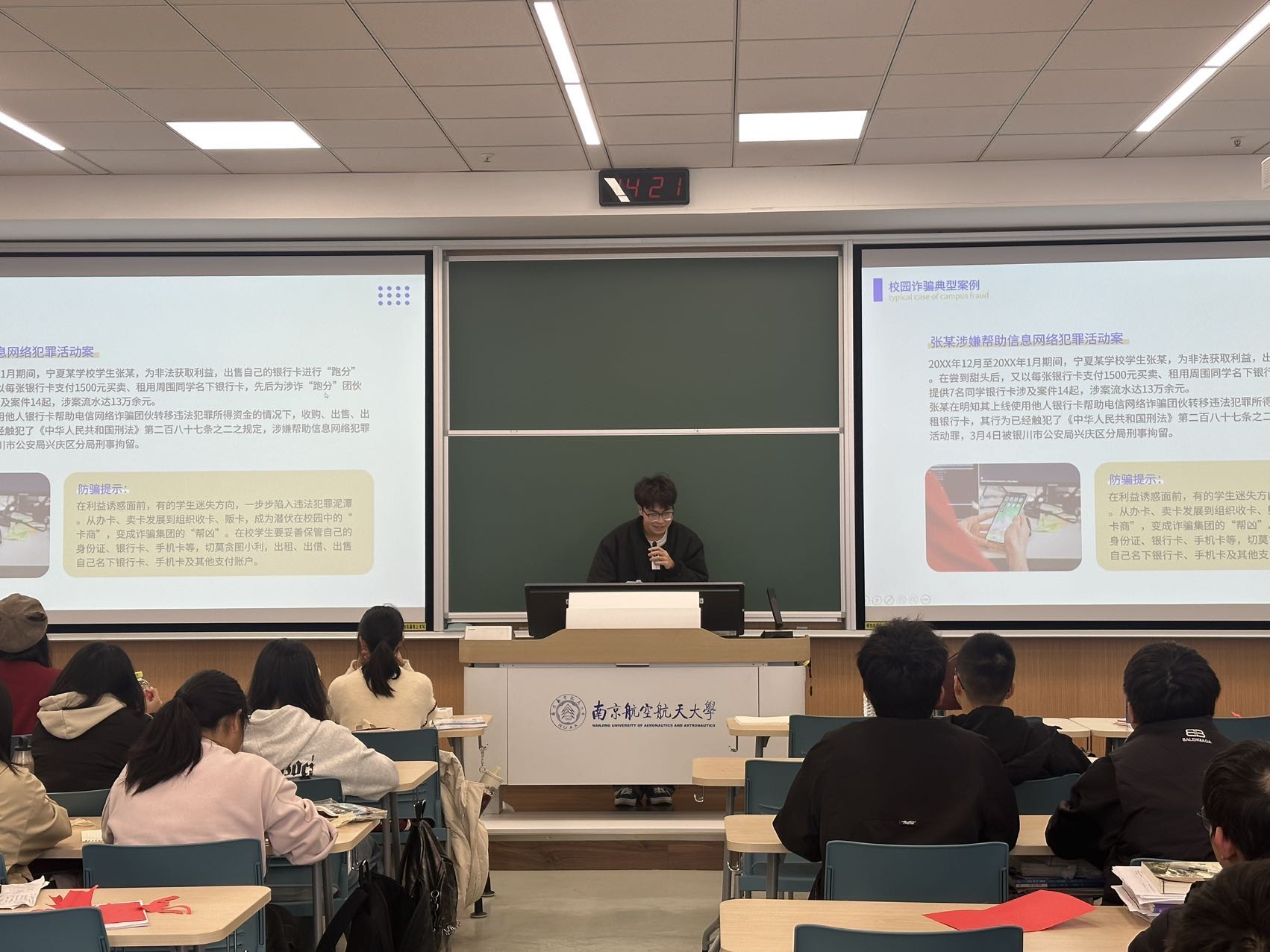 为切实增强学生的安全防范意识,提升自我保护能力,12月8日,社团学姐 开展“筑牢安全防线,护航青春成长”安全专题年级会,重点围绕防范电信诈骗、反传销、抵制黄赌毒三大主题展开深入讲解,辅导员迪丽努尔贝坎、副班主任以及2025级全体少数民族预科班学生参加。