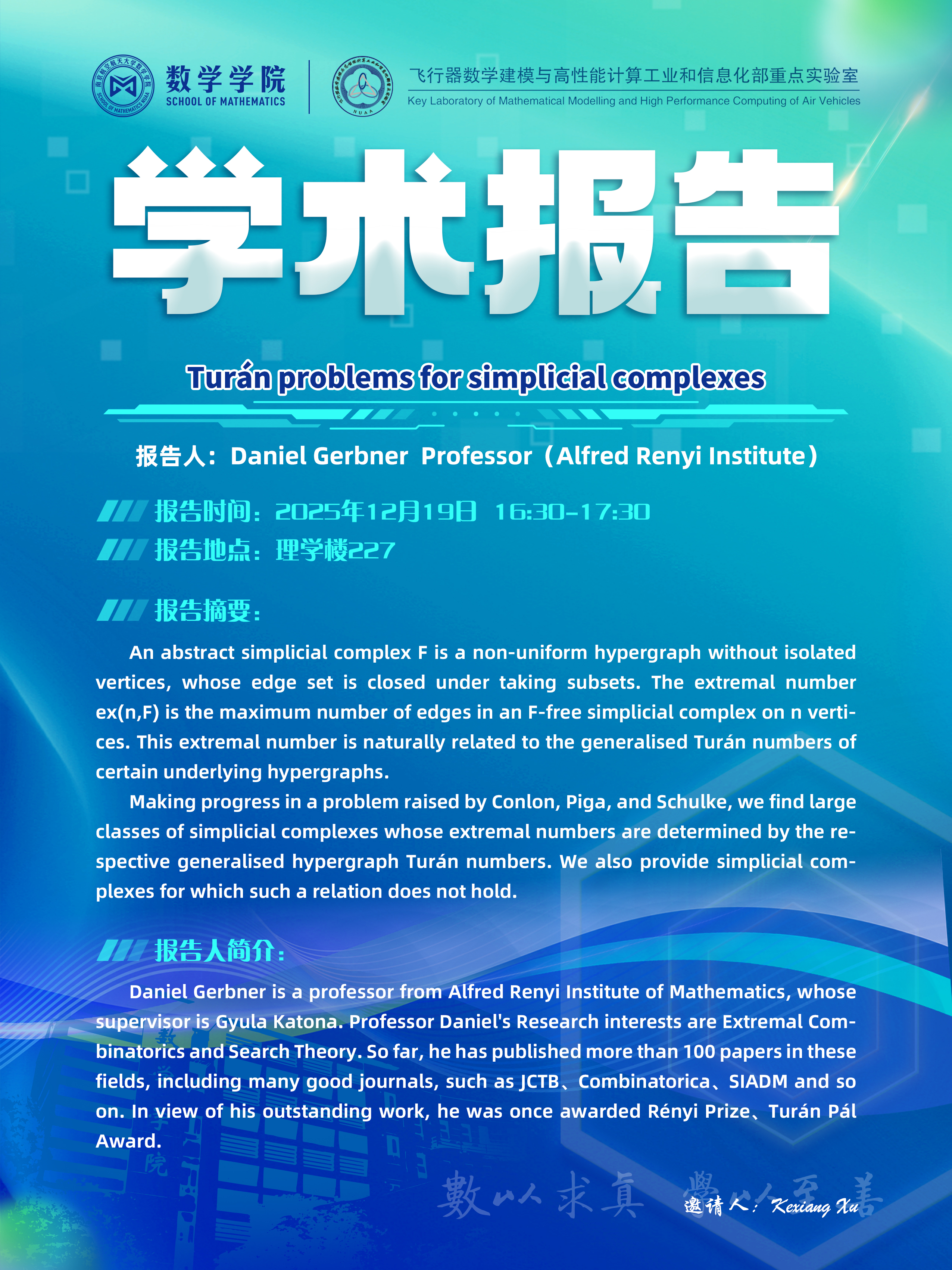 【学术讲座12.19 Daniel Gerbner Alfred Renyi Institute】