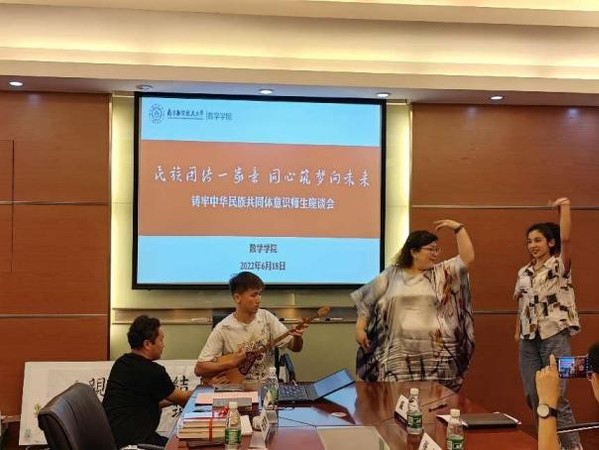 6月18日下午,社团学姐 召开“民族团结一家亲,同心筑梦向未来”铸牢中华民族共同体意识师生座谈会。社团学姐 党委书记许静,校党委统战部副部长、组织部副部长单冠贤,学生工作处副处长、学工部副部长张跃,新疆内派教师玛依拉·赛依力、张明坤,学院团委书记戚月、少数民族辅导员迪丽努尔·贝坎与来自全校维吾尔族、蒙古族、鄂温克族等八个民族的9名同学进行座谈。社团学姐 党委副书记周佼佼主持座谈会。