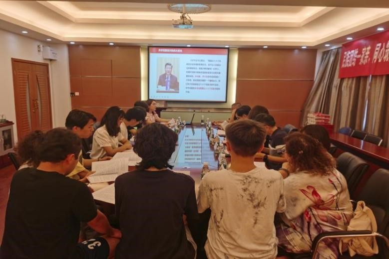 交流前,先由迪丽努尔·贝坎带领参会师生共同学习《共享民族复兴的伟大荣光——习近平总书记关于民族团结进步重要论述综述》,全面回顾了十八大以来,习近平总书记关于民族团结进步的重要论述。