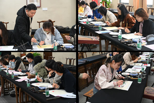 随后,校工会党员、中国书法家协会会员郭洪豹带领两支部党员同志共同画“廉”。他为师生们细细讲解“莲作品”中的“廉文化”时代演变,带领师生们感受廉洁文化不断丰富的内涵。随后,师生党员们手持画笔,共同在画布上勾勒出了形态各异的莲花。莲花在中国传统文化中象征着高洁、廉洁的品质,书画作品春风化雨、润物无声,以“莲”传“廉”。两支部党员同志在书韵墨香中感受廉洁文化的洗礼,涵养风清气正的组织氛围。