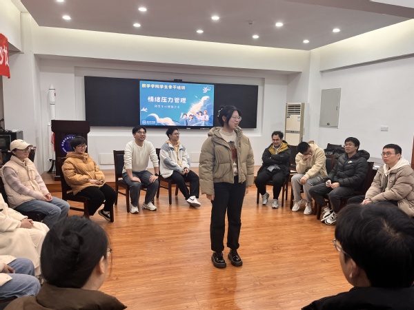 为进一步加强学院研究生心理健康教育工作,促进学生干部掌握班级团体心理辅导技能,共同促进研究生健康成长,学院于12月20日下午在将军路校区理学楼321会议室开展了主题为《研究生情绪压力管理》的研究生学生骨干团体辅导技能培训。培训特别邀请了校心理健康教育中心倪亚红老师,学院研究生辅导员、学生代表共计20余人共同参加。