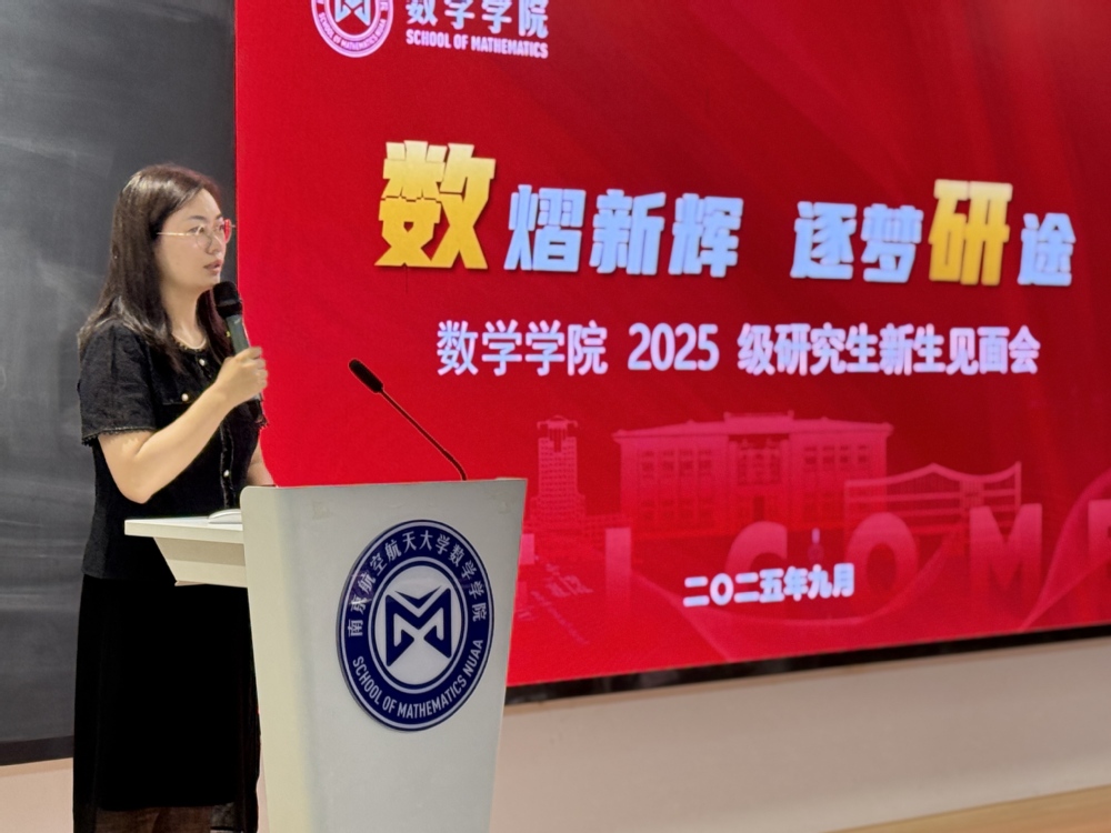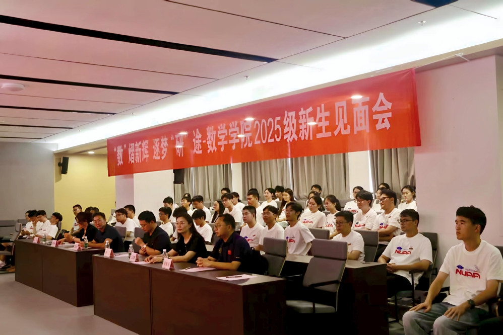 9 月 2日下午,社团学姐 在将军路校区主楼12001 报告厅举办“数熠新辉,逐梦研途”2025级研究生新生见面会。学院党委副书记王亚鹏、副院长徐江、数学系主任周良强、计算科学系主任龚荣芳、研究生教务员鲁晓林,以及2025级全体研究生参加会议,紫金山实验室人事部副部长闻然受邀到场为新生讲授研究生开学第一课。会议由学院团委书记、研究生辅导员康怡宁主持。