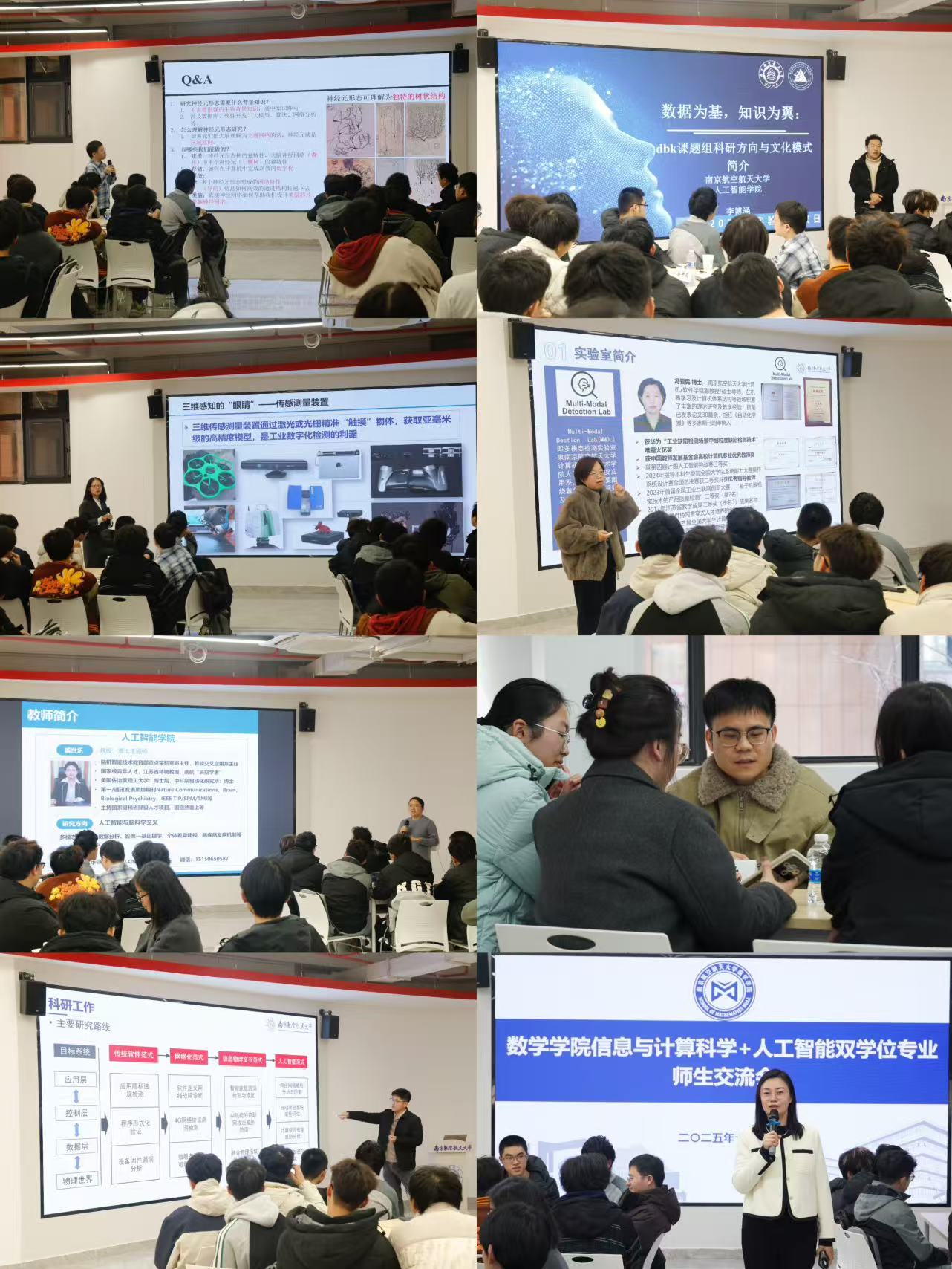 12月26日,社团学姐 2024级、2025级信息与计算科学+人工智能双学位专业师生交流会在天目湖校区举办,人工智能学院和计算机科学与技术学院/软件学院7名导师、社团学姐 党委书记王亚鹏、计算科学系主任龚荣芳以及本科生到场参加。